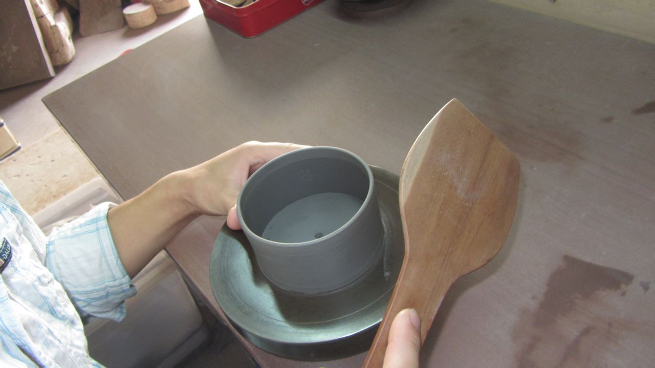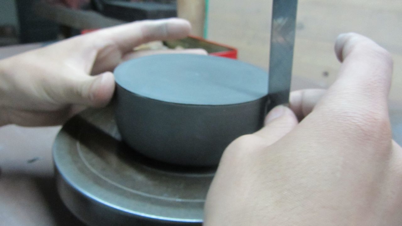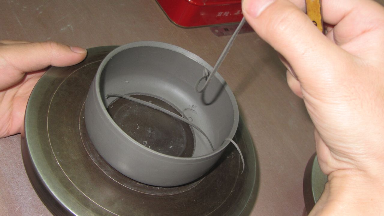 拿下来,把接头压紧段泥的泥性不同于紫泥,做的时候要尽量紧
