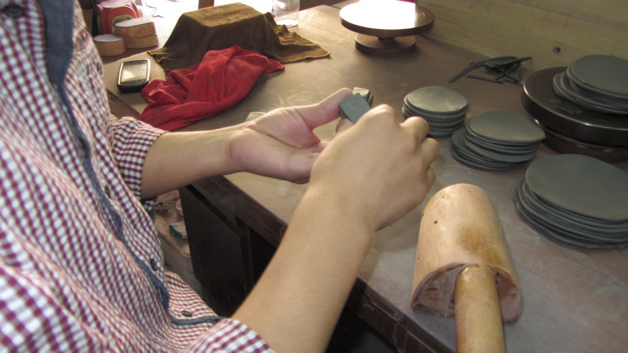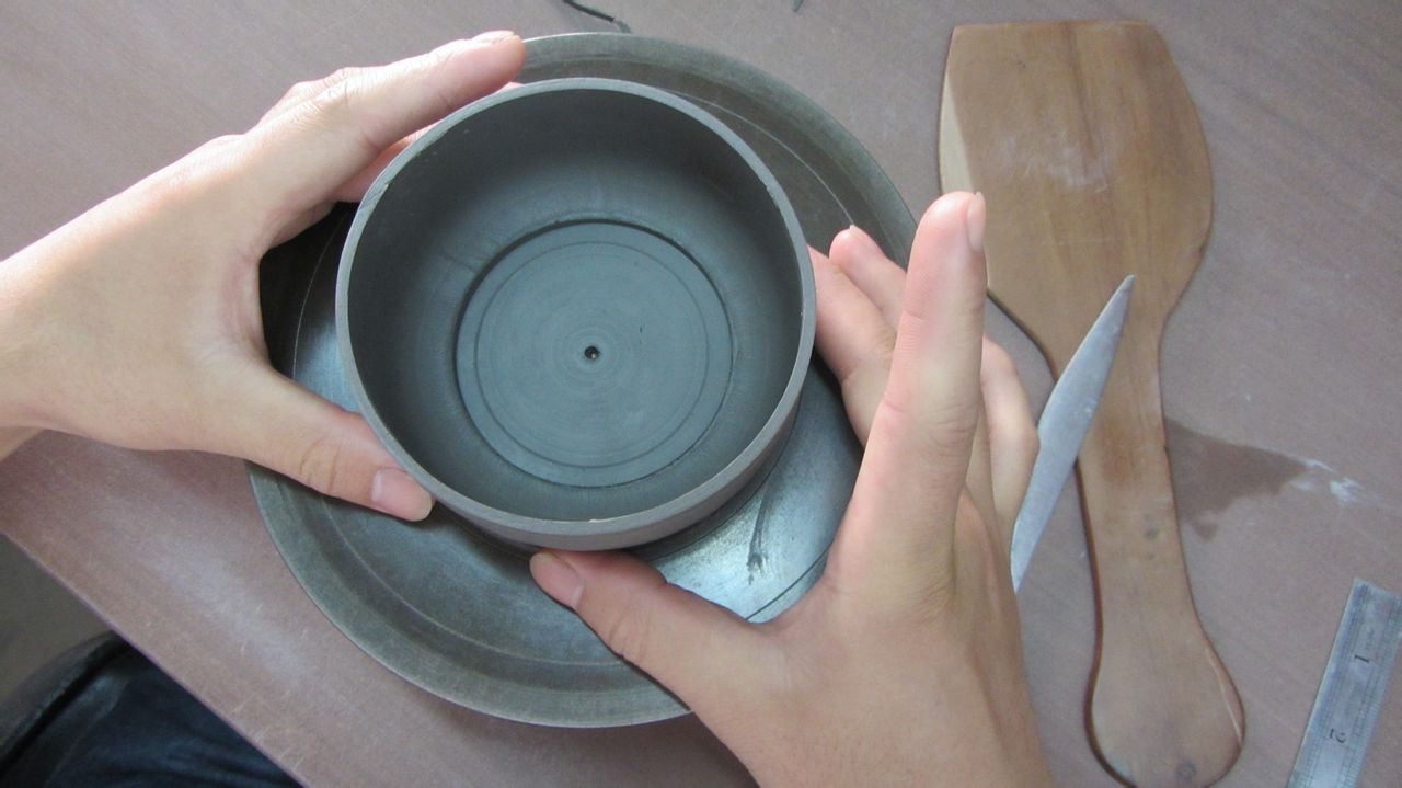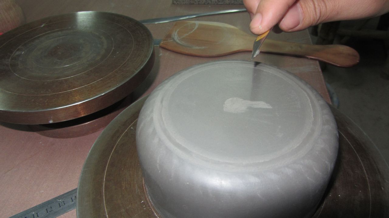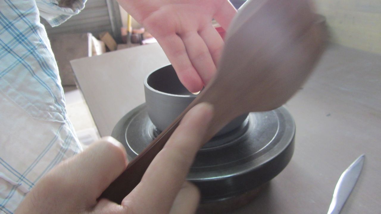 拿下来,把接头压紧段泥的泥性不同于紫泥,做的时候要尽量紧