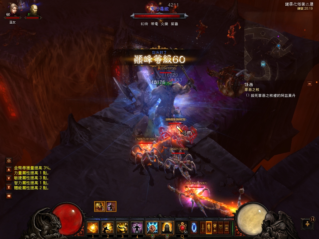 我只带了地狱火,刷0难度,只刷双坑,战场,石磊天顶,要塞32,半小时不带鉴定装备,另外我是双持的,经验=以前通刷差不多