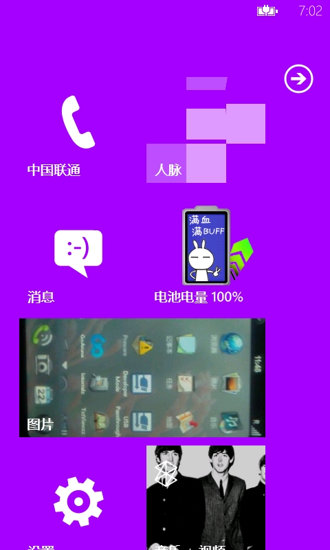 然后我突发奇想,觉得把手机调成高对比是不是也好看呢?顺手把Titan主题调整了,WP7.8Beta ROM。