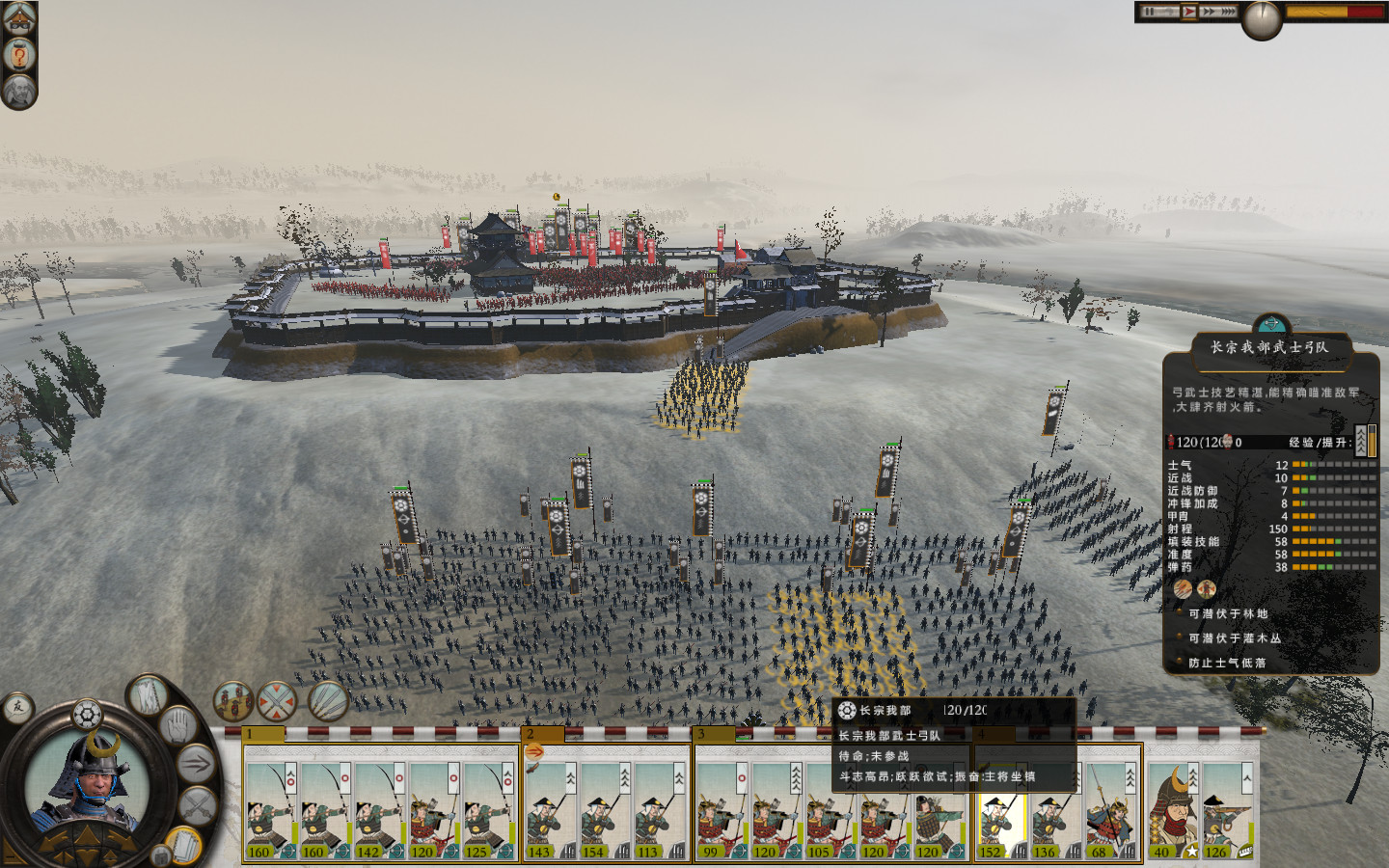 长宗我部嘛...家族特性.果断的奔弓去了.....大弓队一出.....攻城的时候你什么在城里都没用......除非是大量僧弓.....