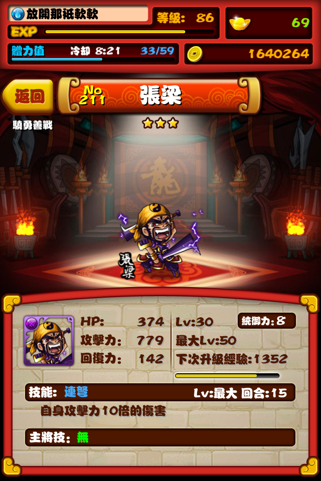 现在吃上瘾了。。一只小马岱被我吃到6级。。还在犹豫要不要继续吃...连弩小兵的经验真的好少...