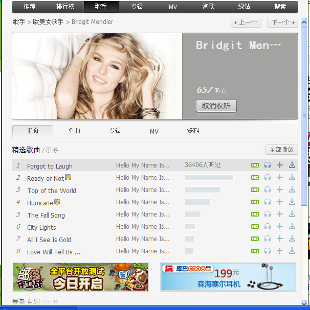 我在BM专辑首发那天,偷偷开电脑看了~~最多试听的歌是:Forget To Laugh(恭喜恭喜~)