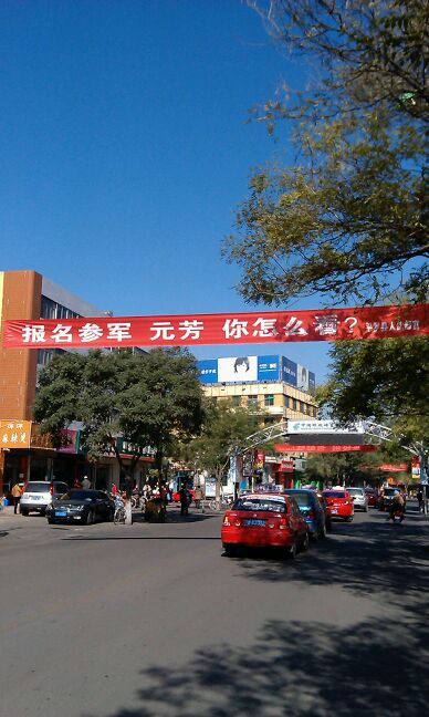 今天广场路口挂的征兵标语。元方,你怎么看?