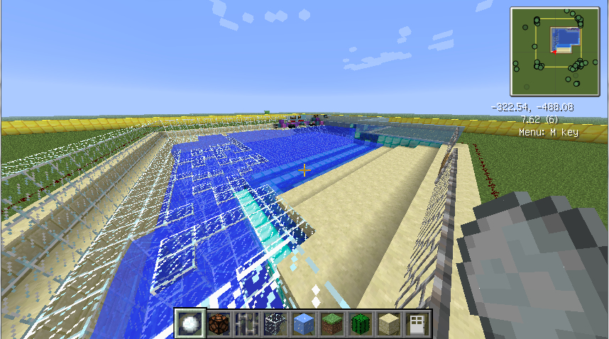 仙贝!我的游泳池造好了了哟~~~花了我整整一个晚上,全自己跟着感觉走的,而且地底铺的是玻璃,打空铺玻璃的时候掉下去死了好多好多次。。。