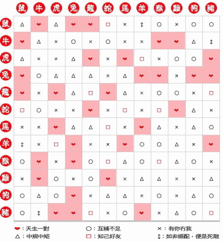 【生肖匹配表】:横排男,竖排女。。。大家来看看你和你对象是…