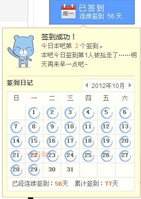 连续在本吧签到2天,晒下签到排名照,看看我神马水平