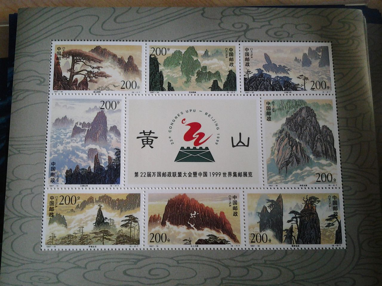 话说最新的邮票终于在今天到货了,新进的黄山纪念邮票整版,配上黄山邮资明信片,绝对是完美的组合,不多说了,大家看图吧
