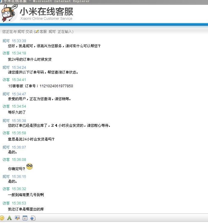 上次米1s,我去留言他就给我发货了