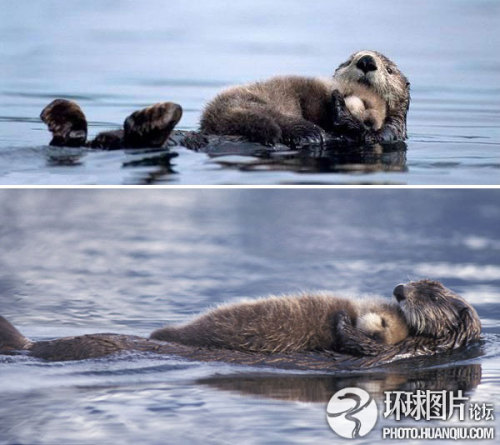 小水獭在妈妈肚皮上睡着了这温馨的场面发生在美国阿拉斯加州南部海岸地区。阳光明媚的一天,水獭妈妈打算带宝宝到河对岸去,但是困倦的宝宝可不愿辛苦游着过河。于是,水獭妈妈把宝宝放在了肚皮上,“仰泳”抵达河对岸,水獭宝宝全程酣睡。这一幕被摄影师史蒂文·卡兹洛斯基拍摄了下来,上传到网上后,温暖了无数人的心。