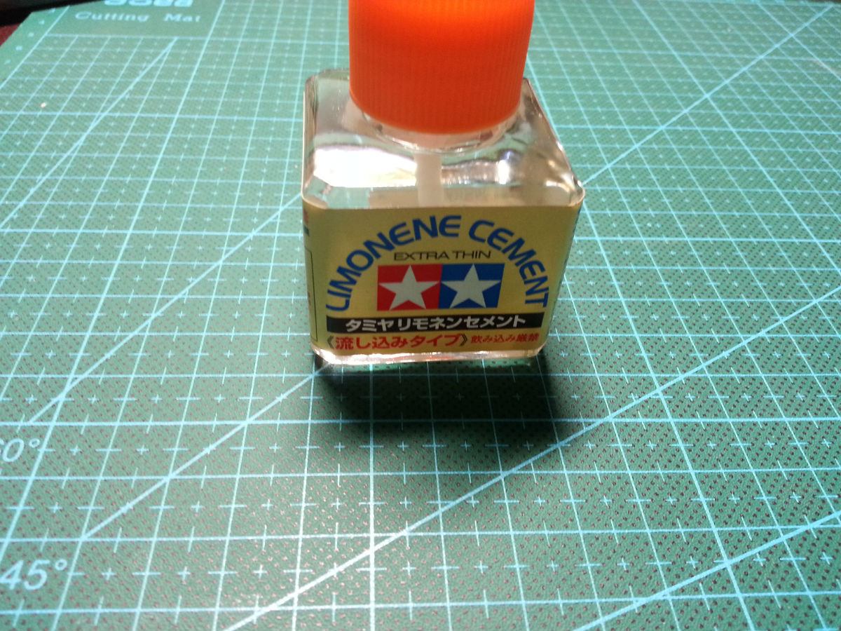 然后用田宫的橙味胶水试着粘一下~我估计效果不怎么样~结果还是悲剧了,一装上零件就又断了~因为手头只有橙味胶水~不知道其他胶水怎么样~