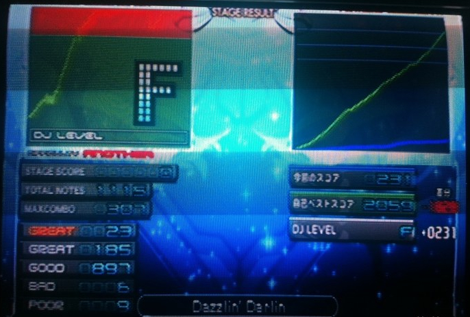 这电视算是没救了,要么目押判定完美时候音和NOTE对不上,要么就是得各种提前。。。。。。。。。-5至+5全试过了,带着气打今儿就背着悲催判定给郁闷到了,我彻底败了。。。。。