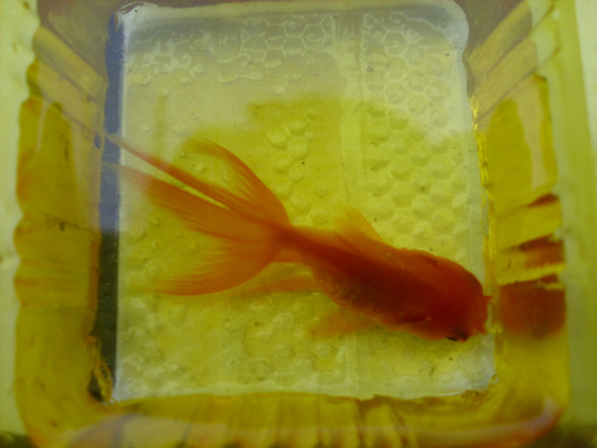 回复 wing天使之翼 :这是换水的过度容器啦~我不想用手去捞= = 有个鱼缸的。养金鱼切忌喂食太多,我小时候养的各种金鱼都是撑死的