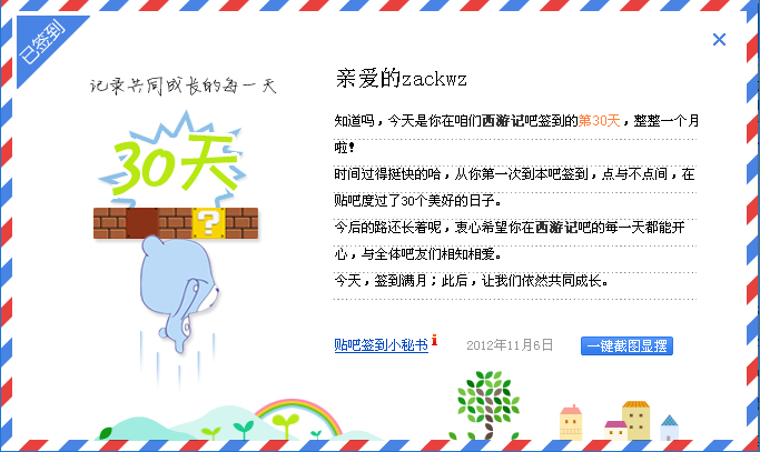 高人啊, 我第一次签到29天然后悲剧了, 这次是第三次重新来过, 希望是最后一次了, 呵呵