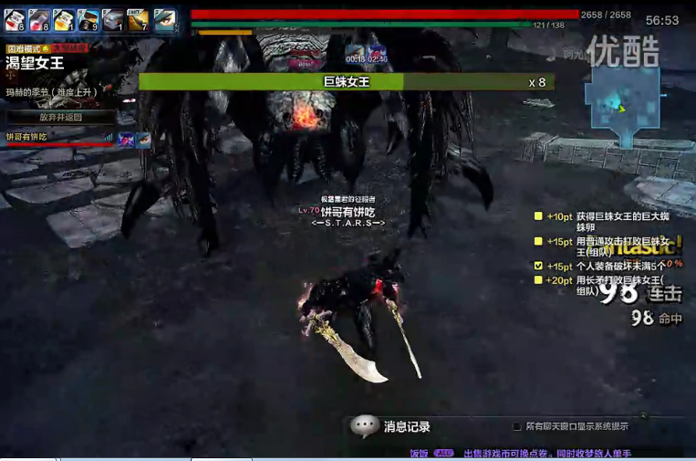 所有的血药站着喝的呀,跑着喝的是体力药水,因为高防所以喝的药水貌似也没超过5瓶吧…忘了,录的时候太卡有些地方没处理好,不过我看的视频里面锤子英雄女王基本就是这样打,也找不到更多的输出点了