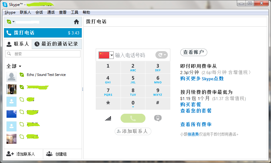 电话费太贵(10美分/分钟),Skype就便宜多了,买了套餐之后3美元一个月随便打,哈哈哈。