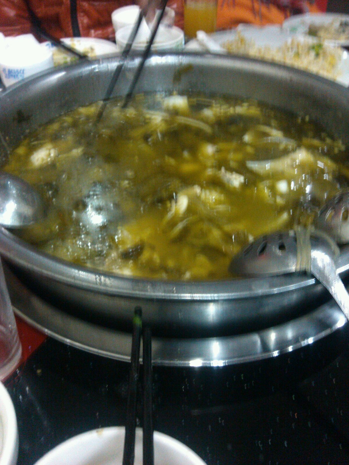 四人!八斤酸菜鱼!吃的就剩酸菜了!很有战斗力!