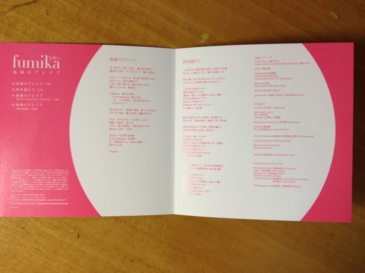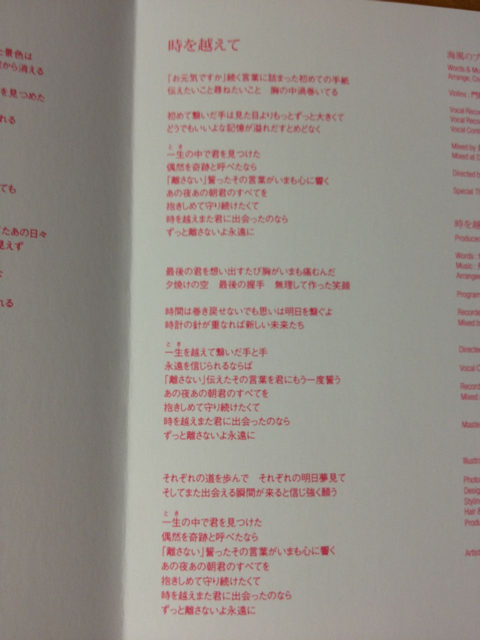 歌词和赠送的卡片