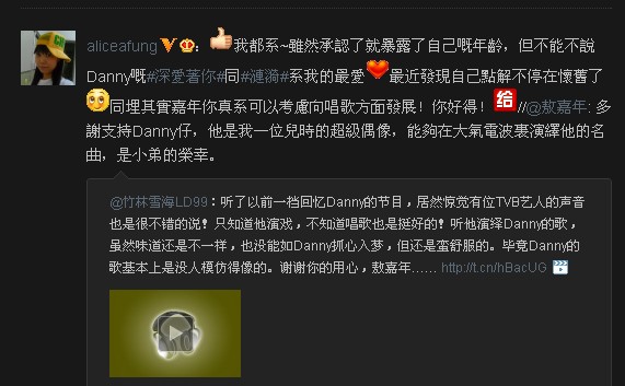 : 听了以前一档回忆Danny的节目,居然惊觉有位TVB艺人的声音也是很不错的说!只知道他演戏,不知道唱歌也是挺好的!听他演绎Danny的歌,虽然味道还是不一样,也没能如Danny抓心入梦,但还是蛮舒服的。毕竟Danny的歌基本上是没人模仿得像的。谢谢你的用心,敖嘉年……