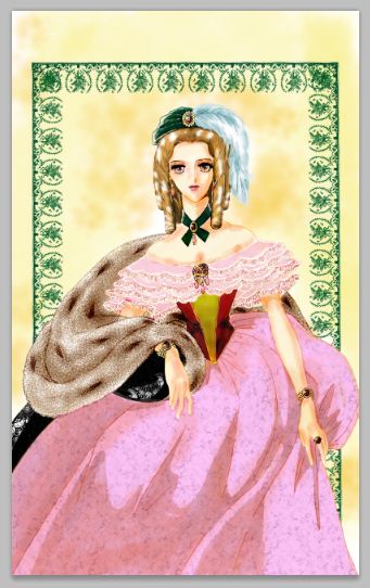 回复 菡萏诗 :还有如果你把裙子化成丝绒蓝或者就你那张头上墨绿色的话会显得更高贵人物也就突出来了,脖子上的也一直就延续你那黑色的项链,,如果你选择浅色衣服的话那背景也就相对的画成深色来突出人物