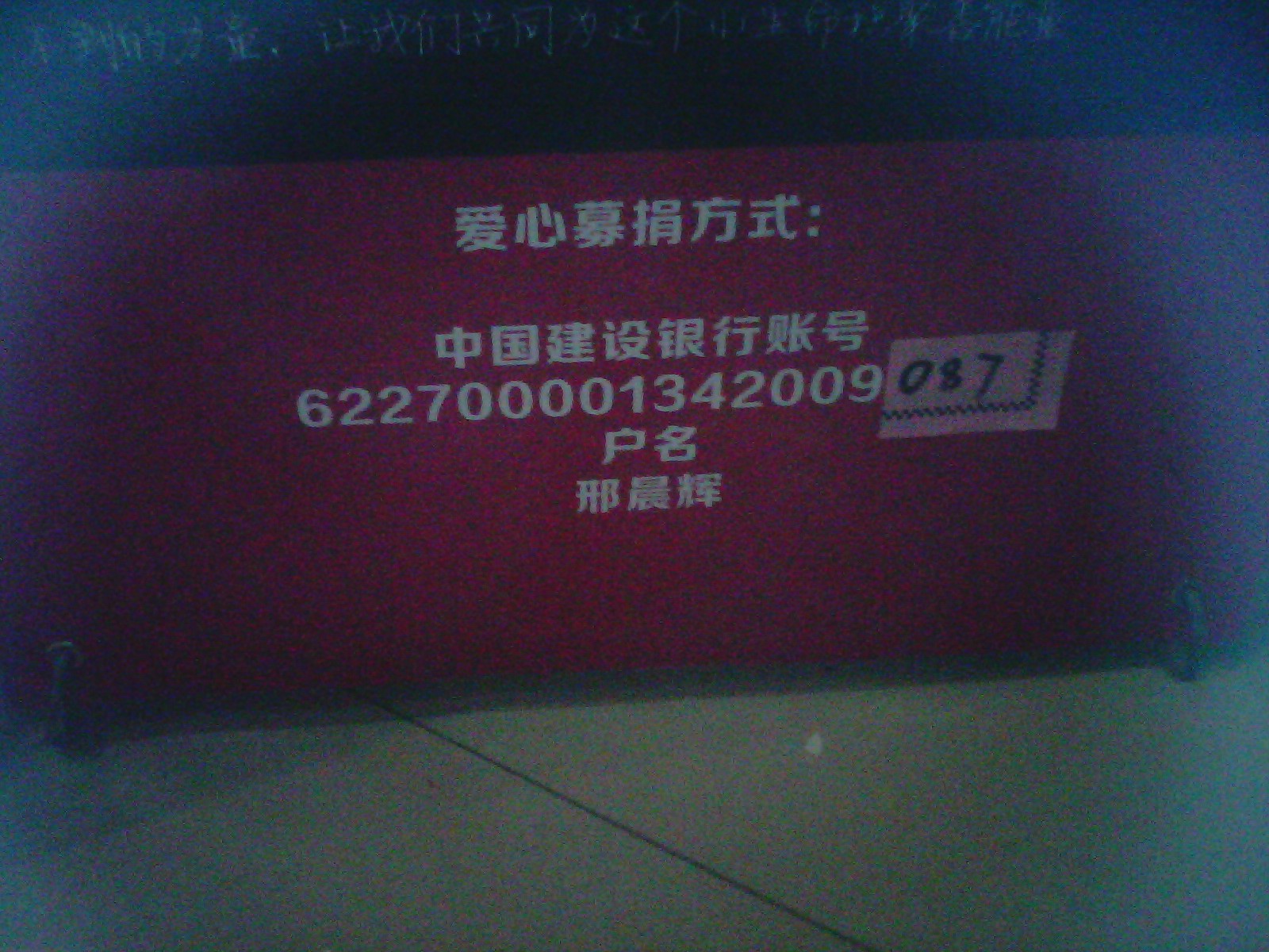 这是捐款用的中国建设银行账号 622700001342009087