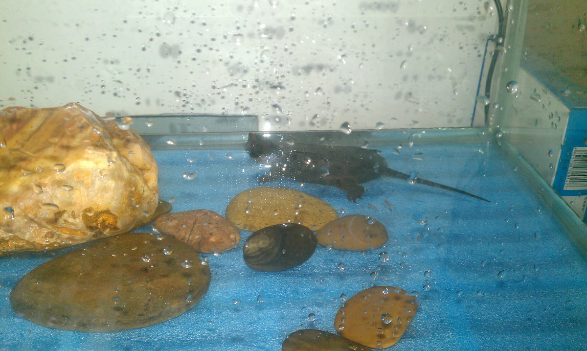 鹰嘴龟水过背即可,水性不好,水族箱别一直盖着盖子,要有流通空气,不然容易腐皮。