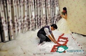 一对情侣计划在今年12月9日结婚那天创造一个奇迹:制作一件独特的婚纱。他们一起选材料,一起缝制。经一个多月的辛劳,终于完成了一件520米长的婚纱!婚后将送给下对新人~~~