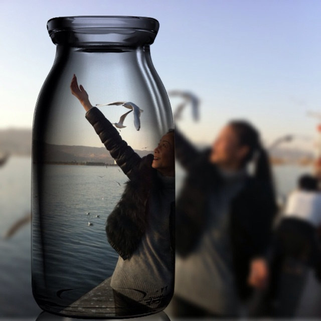 我会拿啤酒瓶放进去