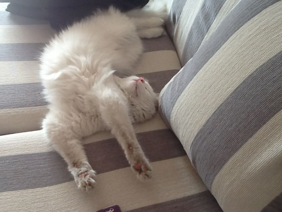 回复 吃吃吃吃肉包子 :必是现在母猫都开始没节操了吧~~我家那货也是母喵。就没有一次稳稳当当当 团成团睡觉的时候,全部都要四仰八叉的睡的才安稳