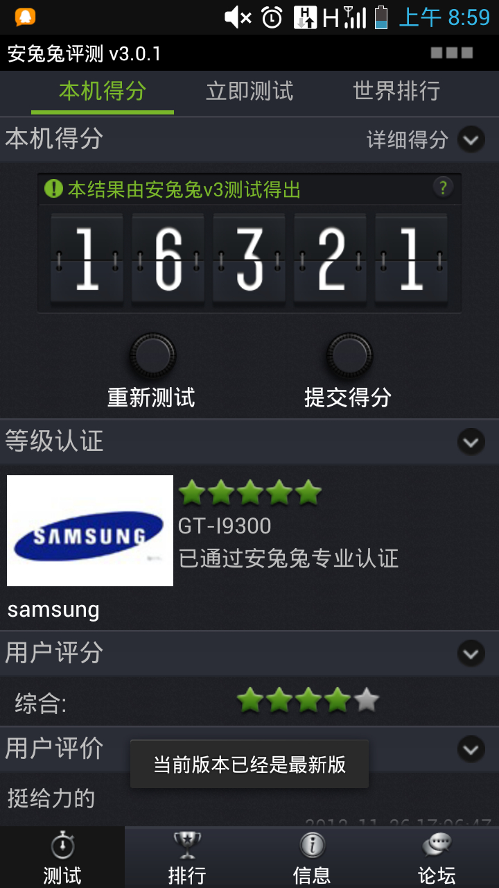 娱乐兔3.0.1终于能在3D得分上考虑分辨率的影响了。。。