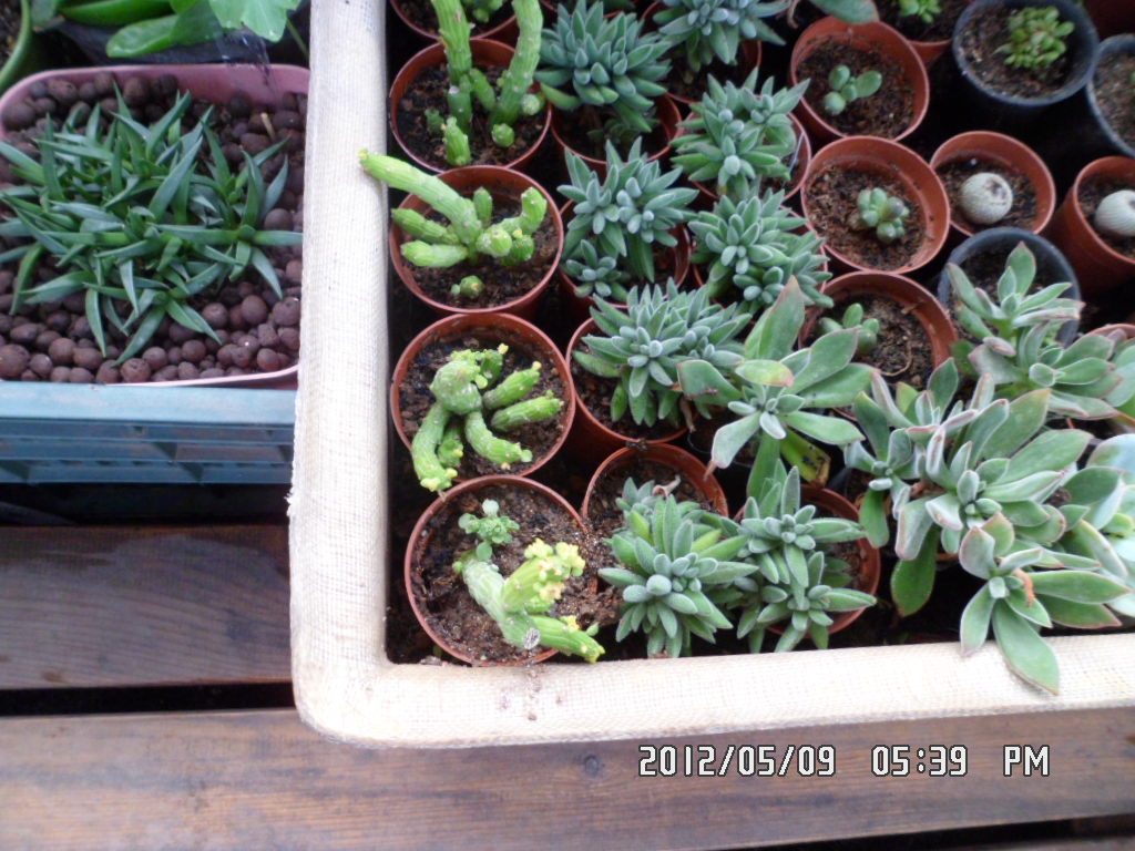 很多朋友问老崔浇水的问题,这也是很多多肉新手最大的困扰,借此机会,老崔浅谈一下多肉类植物浇水的基本原则。因家庭养殖大多采用盆栽方式,故浇水既要考虑肉肉们对水分的要求特点,又要考虑每一盆植株的具体生长情况,同时还要兼顾天气、土壤及其它的栽培条件。一般盆花浇水要掌握“不干不浇,浇则浇透”的原则。掌类和多肉花卉除了刚出土的小苗阶段外,基本上也应该这样掌握。这类花卉和其它盆花相比有两大不同:一是它们有明显的生长期和休眠期:二是它们贮水较多,缺水后生长受影响,但外表上不一定马上有变化,而一旦水分太多又很容易腐烂。因此,浇水时应更细心才能做到适时适量。可以这样掌握:生长旺盛期多浇水,休眠期少浇水或者不浇:小盆要经常浇,大盆浇水次数要少:附生类型可多浇,陆生类型要少浇:叶大而多者多浇,茎和茎干膨大者少浇:生长旺盛者多浇,根第弱、生长不良应少浇:晴天多浇,阴雨天少浇或不浇:砂质土栽培多浇,而土质较粘重者少浇!!! 老崔的肉肉们多是采用套盆养护,即——种植槽或大的花盆里填半盆保水、通透性、肥力好的土壤(老崔用的是腐熟的蘑菇培养基),肉肉们用小盆栽种好,放在种植槽或大的花盆里。这样的目的是为了给肉肉们创造一个“接地气”的机会,即使很久不浇水,肉肉们也不会缺水、缺肥。