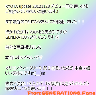 【GENERATIONS】2012/11/28 2012/11/29 片寄 凉太 更新的博客2则