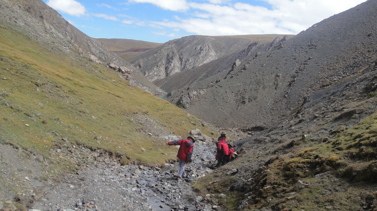 走山路。高原缺氧,爬山过程中呼吸很困难。大部分山地都是这种乱石滩的感觉,没有什么植被