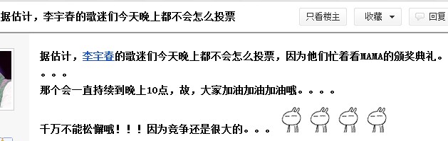 大家都开始投起来,投票才是最主要的,大家要给力起来,千万不能让小人得志,米们不能松懈,大家加油