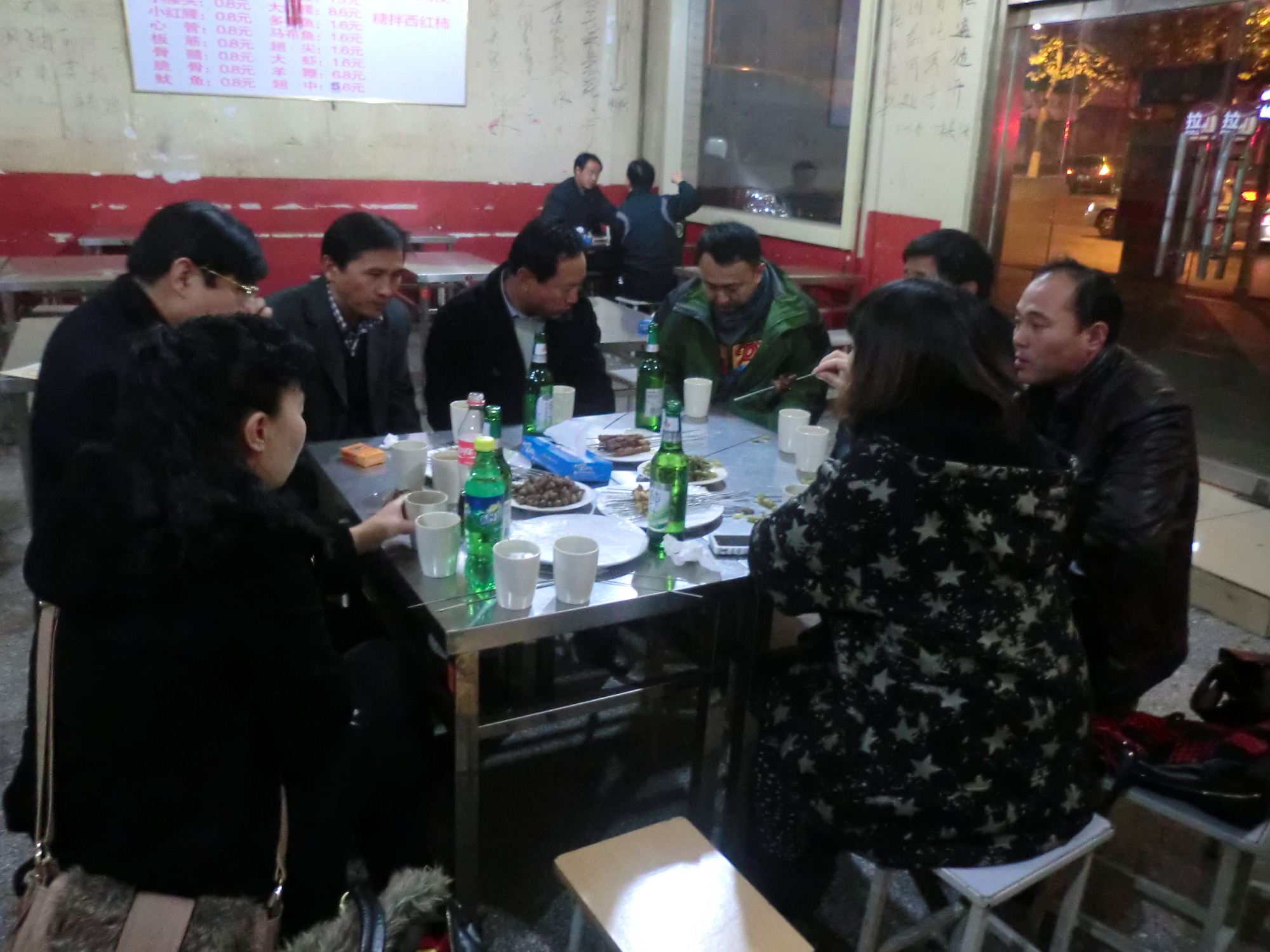 演出结束后,我们现场的珍珠聚餐烧烤店。我身边的这位济南珍珠梁老师尽显地主之谊。