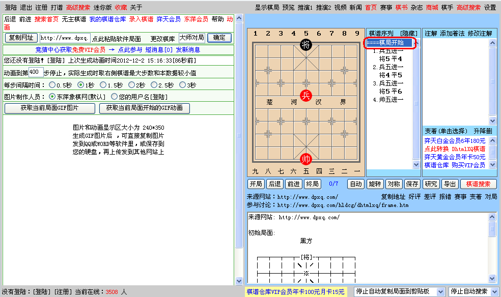 第七步:点GIF动画,变如下局面。(本状态下也可清空棋盘自己添加残局局面等,自己研究去)