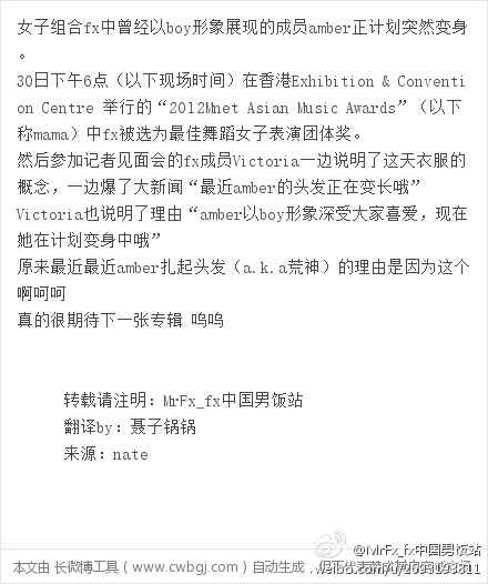 【Key&Amber】[121201新闻]小A要留长发啦!开心惨了~