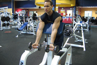 我使用金字塔式加重法,每一组都增加重量。我也使用预先疲劳法则.但不会组间不休息连续做2个二头肌或三头肌练习。