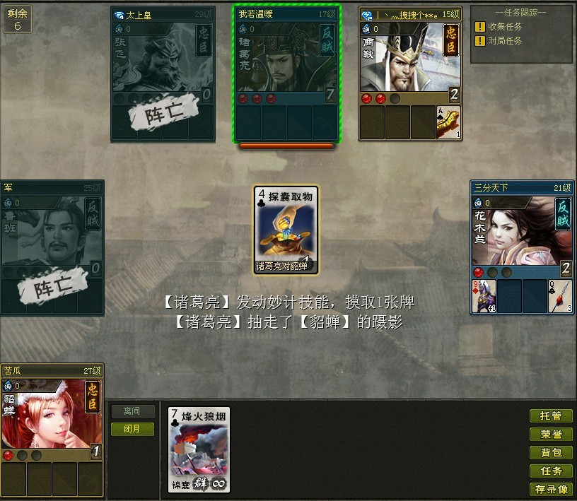 5张牌居然没有杀,自己掉血了