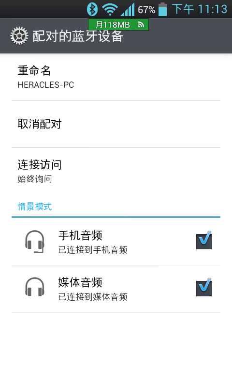 而且还可以在手机播放音乐的时候通过蓝牙将音频信号输入电脑音频设配,比如连接之后用手机播歌,电脑音箱就响了,其实手机的外放声音都可以在电脑端听到,比如截图的声音。