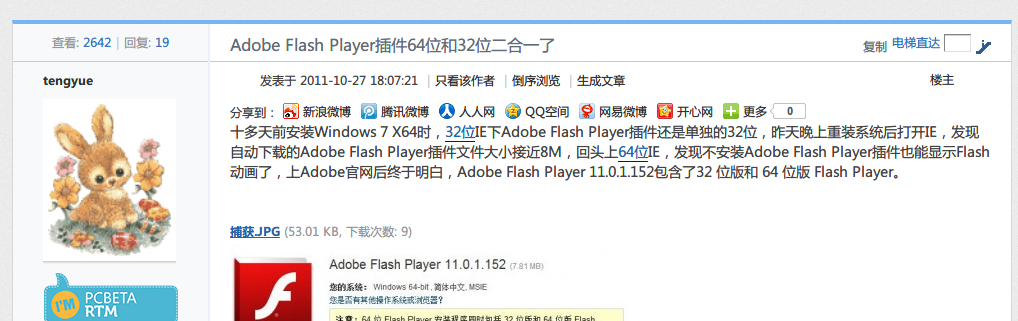 完美兼容64位而已。谁说Flash有原生64位了。