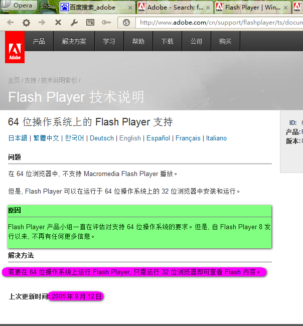 Adobe官方说,没有64位flash