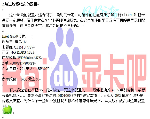 只有第一个子分类中我写了显示器,且所有配置中显示器和机箱的参考性比较弱,可以根据个人喜好随意更换。光驱也是可要可不要的,看个人的需求。毕竟现在