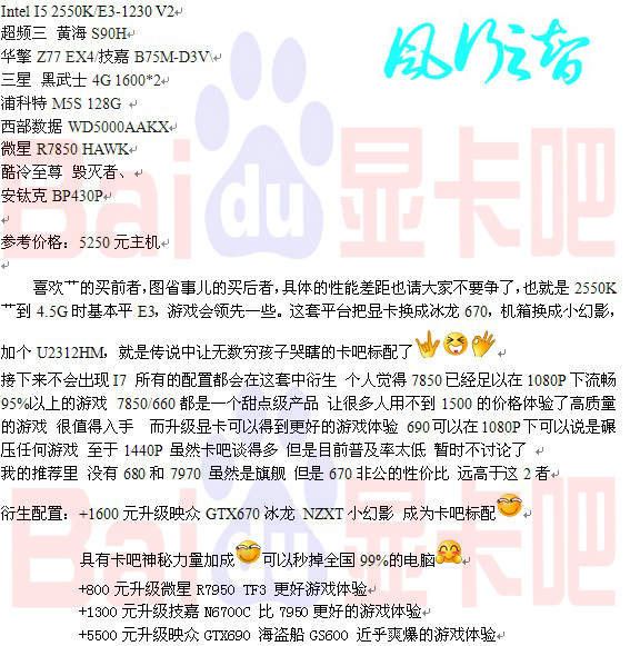 配置贴还有个好处就是,几年后大家翻出来,还可以看看今天的硬件价格和性能状况,这点很不错。