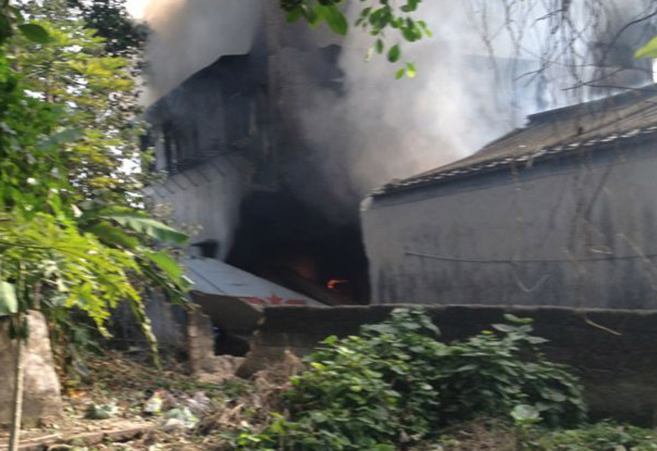 12月4日上午九点多,汕头市护堤路赤窖路段有空军飞机失事坠毁,击中赤窖某一房屋致大火,火势过大,浓烟滚滚。