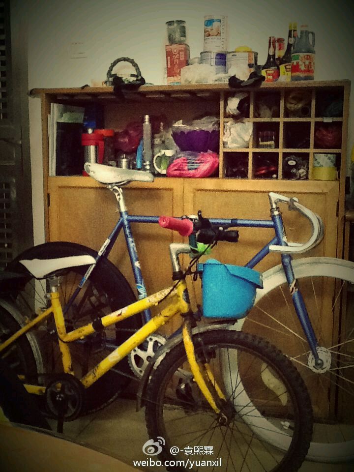 然后我发现我弟弟的童车也是有牙腕组...于是我把他把组换了下来....然后弯把太前倾了..于是...bj燕把..