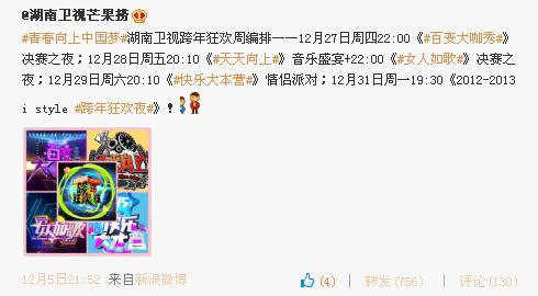 好像还是29号播 看weibo 湖南卫视的芒果捞的置顶贴 12月5日发的