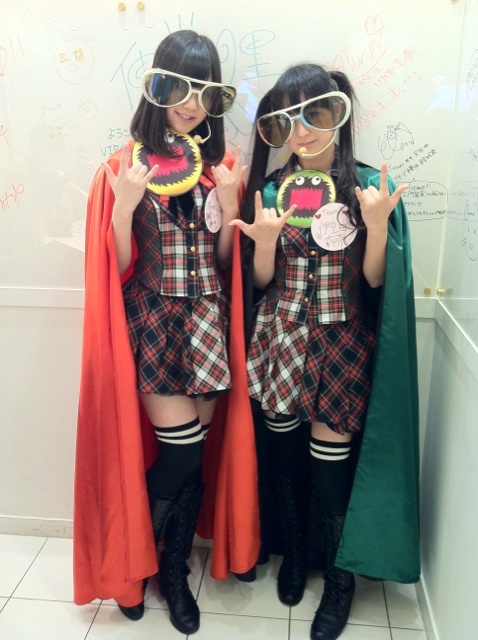 おそろいのマントとサングラスがかっこいいでしょ(⌒▽⌒)これで、その場の空気が微妙になっても二人で乗り越えることができる!!笑