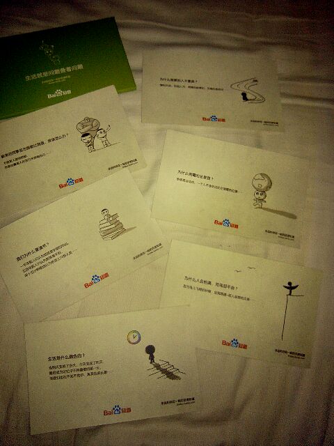 如图。样式简单。在百度知道参与抽奖活动送的。每张都有百度logo和一句富有哲理的话。 应该不算广告片吧。蛮有意义的。喜欢的互换。