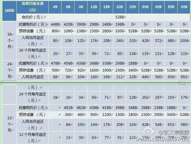 为了比较,我选16g 两年套餐做对此,联通386每月,电信389每月。